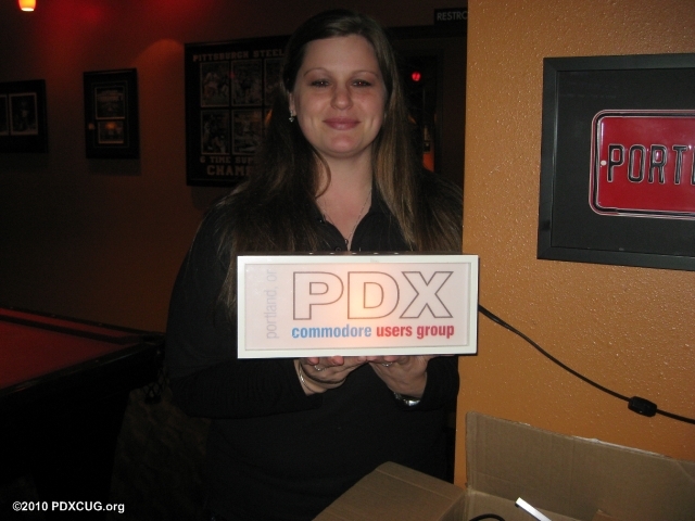 Long-standing member Kirsten showing off her membership status by holding our sign for her friends that don't believe her. FYI - she's been with us since the very first meeting!