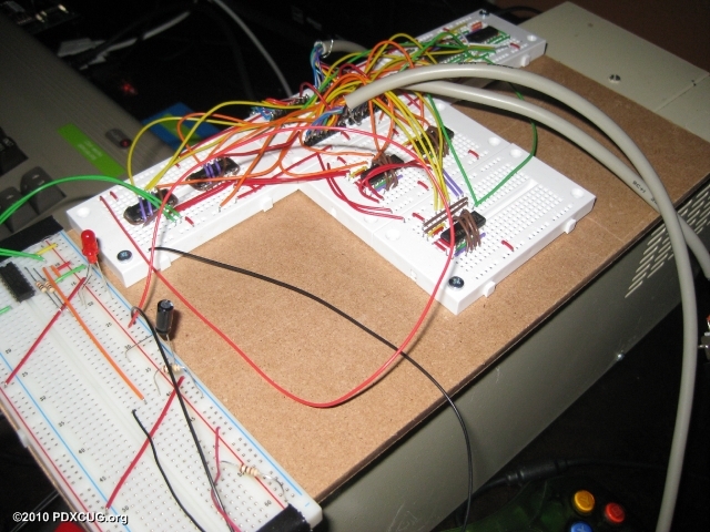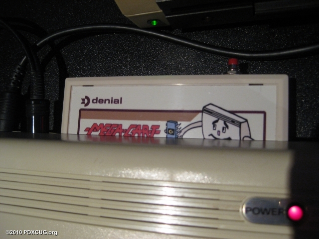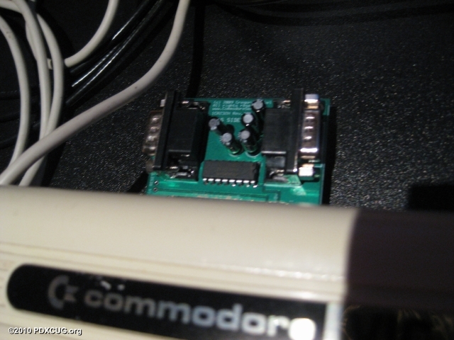 Dan showed us some of his development efforts on the terminal program he is creating for the Vic-20. The program uses the RS-232 port and communicates over the Internet using the Comet64 Internet Modem or a null-modem connection to a PC. In one of the pictures to the right, you can see an RS-232 device which translates signals on the User Port to a standard DB-9 RS-232 connector. More to come.