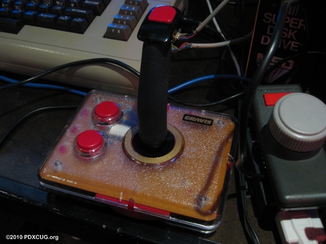 Member Goog brought his Gravis Joystick - it has an adjustable tensioner and 3 buttons, each with their own button configuration options for rapid fire.