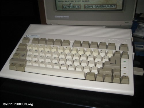 We were pleased to have gencom and his wife come all the way from Seattle. They brought their Amiga 600 computer and we got to see and play some games (such as Budokan The Martial Spirit and Toobin') and see his cool setup - complete with a hard drive inside.