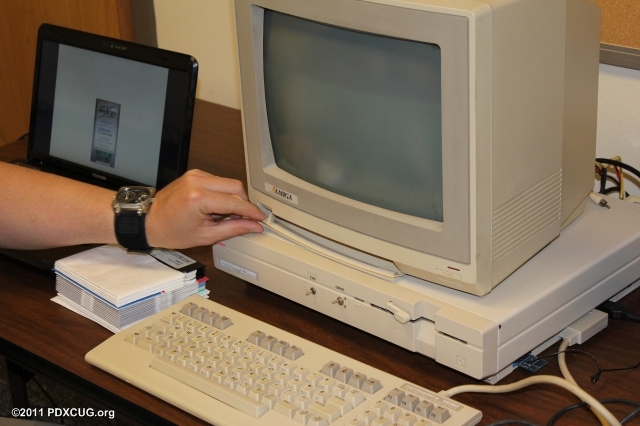 Now here's a hefty one - the Amiga 4000. Gencom64 shows his A4000 to the group.