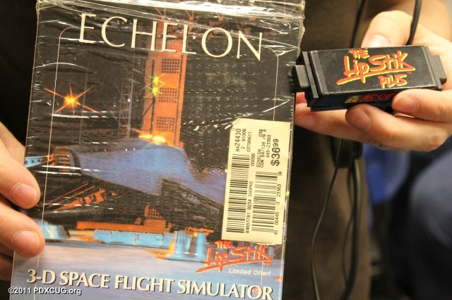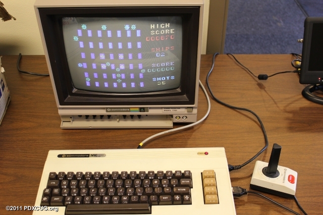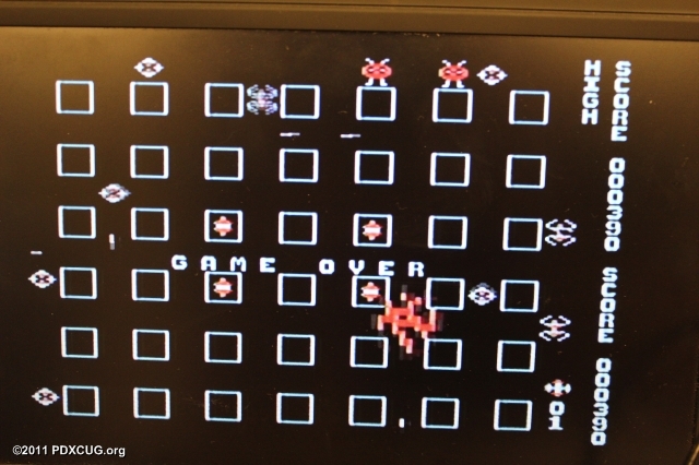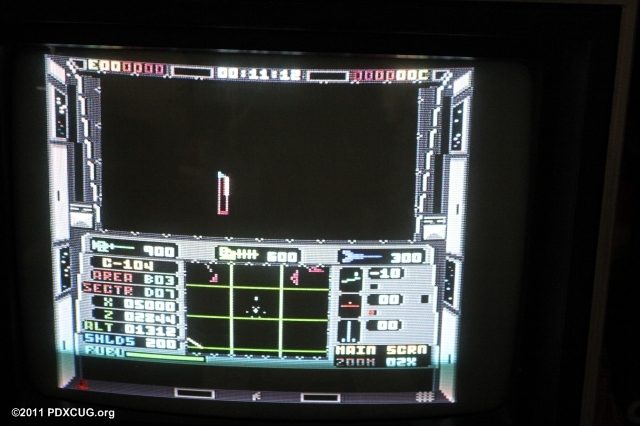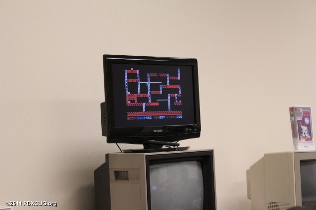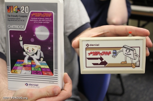 Member Dan brought his Vic-20 MegaCart. It was fun to compare notes to Goog's Behr Bonz cart, but the MegaCart clearly wins for its extra features and nice packaging. Not shown is the Behr Bonz cartridge, but you can see Crossfire being played on the Vic-20 in the picture. The close-up is a Commodore 64 version of Crossfire. Both were fun and had their own unique challenges and playability.