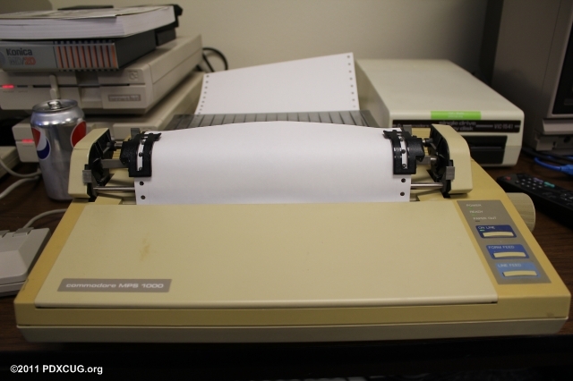 Jim and Dan both brought printers - a Commodore MPS 1000 and a VIC-1525. Too bad the ribbons were so dry, but we were able to faintly see what was printed.