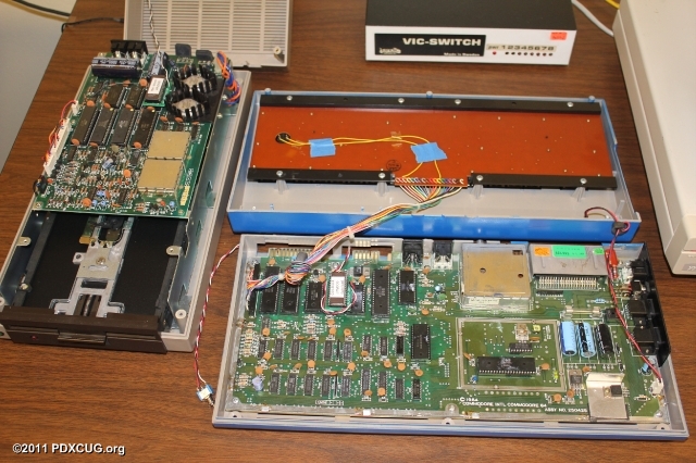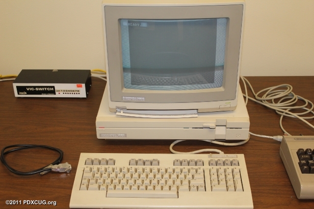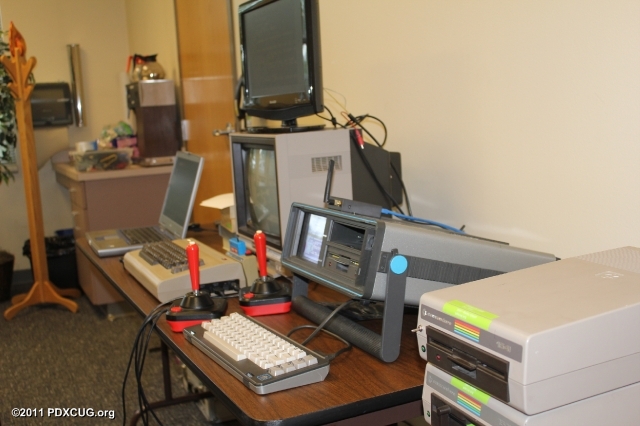 This month we had a few different Commodore computers and hardware to display, including a few Commodore 64 computers, an SX-64 Executive C64, a C128 DCR and 1084S Monitor, a Commodore DTV and a Plus/4. Also, the Vic-Switch, Easy Flash cartridges, Comet64 Internet Modem, a homemade RS-232 device for the joystick port, an 'LBow cartridge port extension, an Ultimate 1541-II, JiffyDOS, a stereo SID board and more.