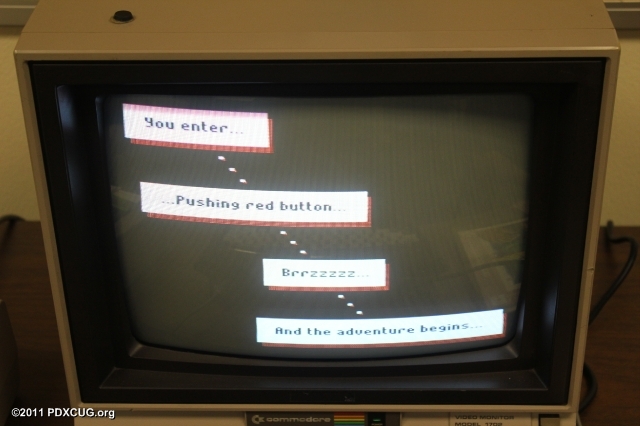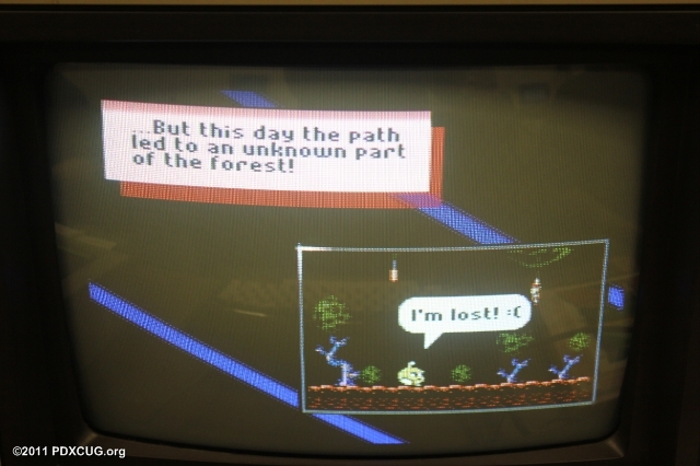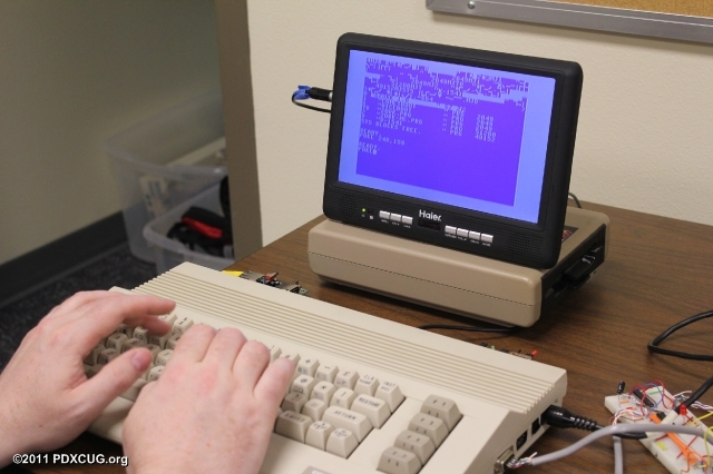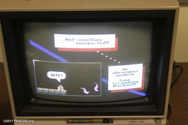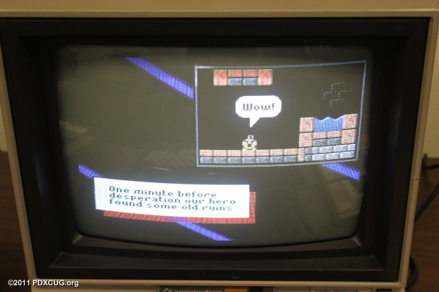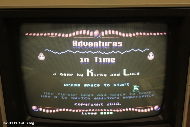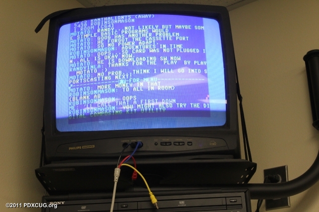 Goog brought his Commodore Plus/4 but forgot to pack any software. Using our virtual meeting on CommodoreServer's chat rooms, we were able to get a suggestion of a program to try out on the Commodore Plus/4. After visiting a Web site, we were able to download the program in D64 format and try it out on the Plus/4.